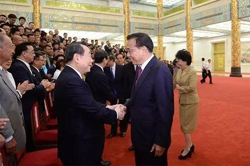 下午3时30分,国务院总理李克强来到人民大会堂金色大厅,会见了正大集团谢国民董事长等首届世界华侨华人工商大会全体代表,亲切握手并合影留念。国务委员兼国务院秘书长杨晶,国务委员杨洁篪,全国政协副主席韩启德、万钢,国务院侨务办公室主任裘援平等陪同参加会见。 李克强总理代表中国政府,对首届世界华侨华人工商大会的召开表示衷心祝贺。他说,6000多万海外侨胞是中华民族大家庭的重要成员,一代又一代华侨华人自强不息,艰苦创业,用勤劳和智慧创造了不平凡的业绩。广大侨胞始终情牵桑梓,心系中华,为实现中华民族的独立和解放、为推动中国的改革开放和现代化建设,作出了特殊的重要贡献。故乡人民永远铭记你们的历史功绩! 在首届世界华侨华人工商大会开幕式上,谢国民董事长发表致辞。他表示,中国国家主席习近平提出“中国梦”的伟大设想,说出了我们华人华侨的心里话,中国的伟大复兴和繁荣富强也是华人华侨共同的梦。习主席还制定了中国的大国外交战略,提出了一带一路的伟大构想,并成立了亚投行和丝路基金以提供配套支持。正大集团对习主席的英明决策高度赞赏,愿尽绵薄之力积极响应:正大集团与上汽集团合资在泰国生产汽车;吸引中国移动参股正大在泰国电信企业TRUE;出资入股中国平安和中信集团;当前正在筹办同中国企业共同投资在泰国建设高铁、飞机场、码头、工业区、新城市等一揽子项目,使其成为一带一路建设的组成部分,并希望可以起到示范带头作用,以便可以在其他国家和地区借鉴和推广。正大集团对中国的发展前景非常看好,未来将进一步加大在华的投资。
