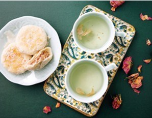 说到最为民间熟悉的花,茉莉花应该算 其中之一。一到夏天,街头巷尾隐约飘来的香 气,在炎热的天气里送来了一丝清凉。老人们 喜欢将洁白的花朵采下,别在衣襟上,随着脚 步,留下一路芬芳,也许这是最原始的香薰了。 这种雅俗共赏的味道使得茉莉花可以入馔, 如与鸡蛋同炒是云南人的最爱,又能作为饮料,茉莉花茶是各地都有的佳饮,如福建的茉莉花茶名扬世界,选用肥硕饱满、洁白晶莹的伏花和明前的鲜嫩绿茶作为窨茶的原料,因为其高远馥郁的香气,双瓣花窨,单瓣花提,做出极品的茉莉花茶。泡上一茶缸的茉莉花茶,放凉了喝,是很让人舒心的消暑饮料。说是茶,却更像花香饮料,说是饮料,隐约间又有茶的滋味,哪怕没有喝茶习惯的人都会接受那好闻的自然花香。茉莉能行气开胃,美好的香味又能解郁散结,清火解毒之余亦能开胃健脾,是炎炎夏日胃口不佳时的一剂良药。