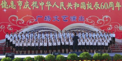 为庆祝新中国成立60周年,进一步激发全市人民的爱国热情,丰富群众文化生活,推动德惠经济平稳较快发展,不断营造建设“富裕、诚信、生态、文明、和谐”新德惠的良好文化氛围,中共德惠市委宣传部于2009年9月22日在德惠市体育场举办了“庆华诞、颂党情、促发展”大型广场文艺演唱会活动。